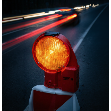 La luz de seguridad probada por BASt es apta para diversos sistemas de balizamiento y ofrece una visibilidad fiable gracias a sus LED de larga duración y bajo consumo.